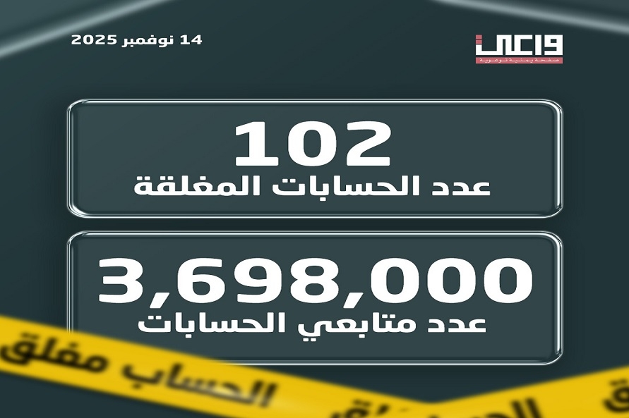 وفي آخر تحديث لها مساء اليوم الجمعة ، أوضحت المنصة بإن اجمالي عدد الحسابات التابعة للمليشيا التي جرى إغلاقها بمنصات التواصل الاجتماعي بلغت 102 حساب ، تملك نحو 3.7 مليون متابع.
