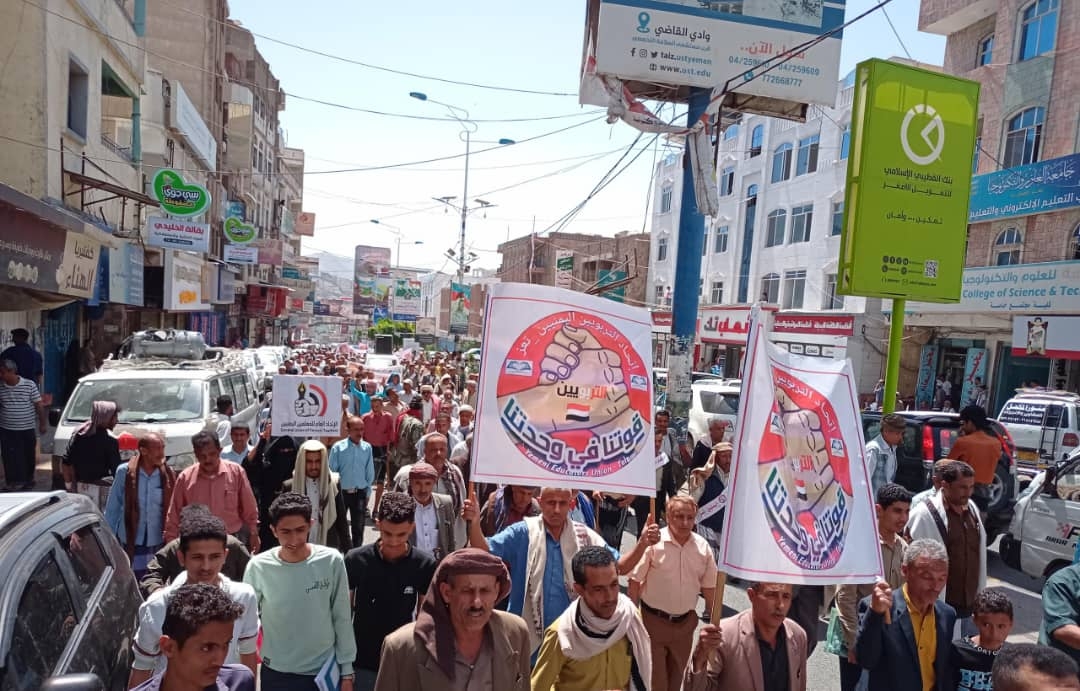 شهد شارع جمال عبد الناصر وسط مدينة تعز، اليوم الأحد، مسيرة احتجاجية حاشدة نظمها المعلمون للتنديد بتوقّف صرف مرتباتهم للشهر الرابع على التوالي، في ظل أوضاع معيشية صعبة يعيشها القطاع التربوي في المحافظة.