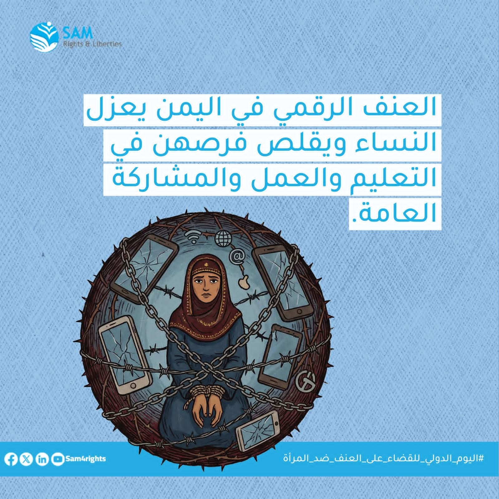 ونوهت منظمة سام للحقوق والحريات إلى أن العنف الرقمي ضد النساء والفتيات في اليمن بلغ مستويات خطيرة خلال السنوات الأخيرة، بعدما تحوّل الفضاء الإلكتروني إلى ساحة مفتوحة للابتزاز والمضايقات وانتهاك الخصوصية، في ظل عجز السلطات وضعف حماية المنصات الرقمية.