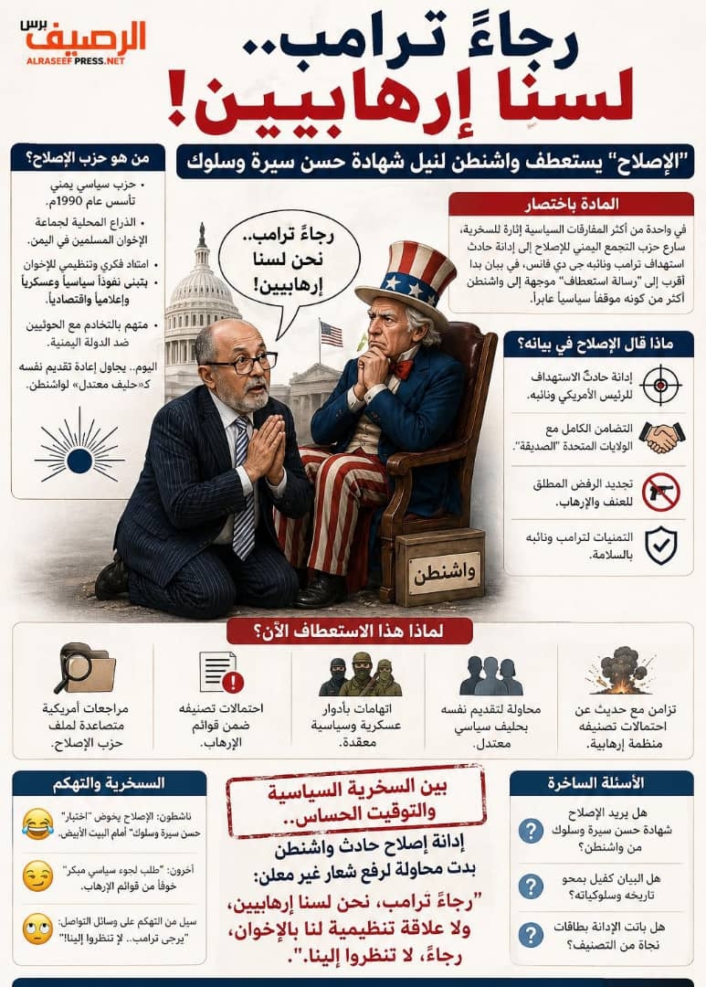 رجاءً ترامب.. لسنا إرهابيين: “الإصلاح” يستعطف واشنطن لنيل شهادة حسن سيرة وسلوك