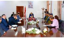 بحث محافظ محافظة تعز، نبيل شمسان، اليوم، مع فريق دعم السلام الأممي برئاسة كلاوس كريستنسن، مسؤول التخ ...