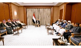 استقبل رئيس مجلس القيادة الرئاسي رشاد العليمي، ومعه اعضاء المجلس، عيدروس الزبيدي، سلطان العرادة، طار ...