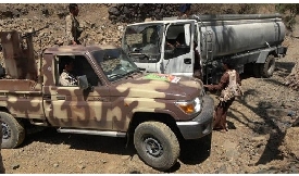 مازالت عشرات الشاحنات المحملة بالبضائع قادمة من ميناء عدن محتجزة من من أيام من قبل مليشيا الحوثي الإ ...