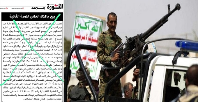وجاء هذا التحذير في أعقاب إعلان مليشيا الحوثي الإرهابية مؤخراً عن طرح ارض في صنعاء للبيع ، وتتبع هذه الأرض أحد البنوك التجارية التي نقلت مقراتها الى عدن.