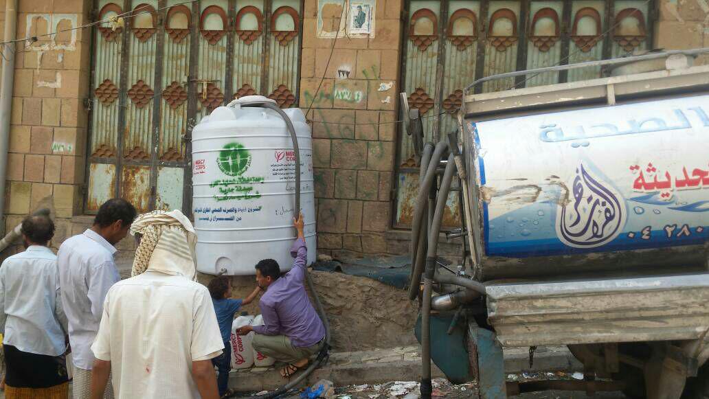 المشروع يهدف إلى تزويد 82 خزان بمياة الشرب النقية تستفيد منه 8170 اسرة بكمية 226000 لتر في الاسبوع في مديريات المظفر والقاهرة وصالة بمحافظة تعز .