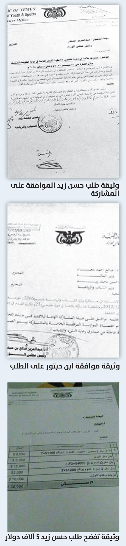 وزير الانقلابيين يستغل خليجي 23 للسرقة.. بالوثائق