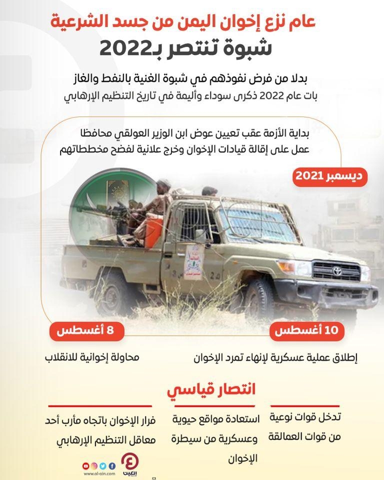 تحول عام 2022 إلى ذكرى سوداء وأليمة بتاريخ إخوان اليمن بعد تهاوي مكاسب التنظيم الإرهابي واحدة تلو الأخرى.