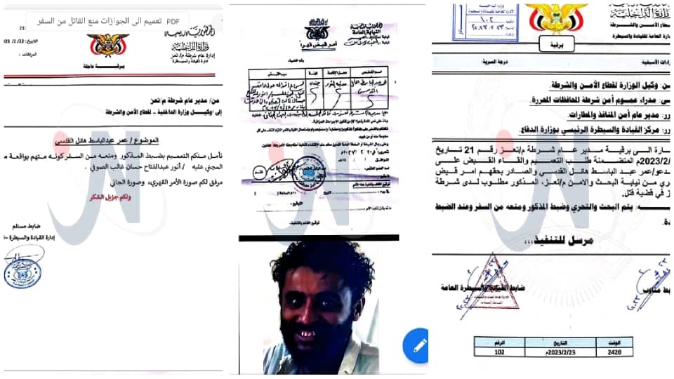 تعز .. أمر بالقبض القهري على قاتل التربوي "الصوفي" ومنعه من السفر - وثائق