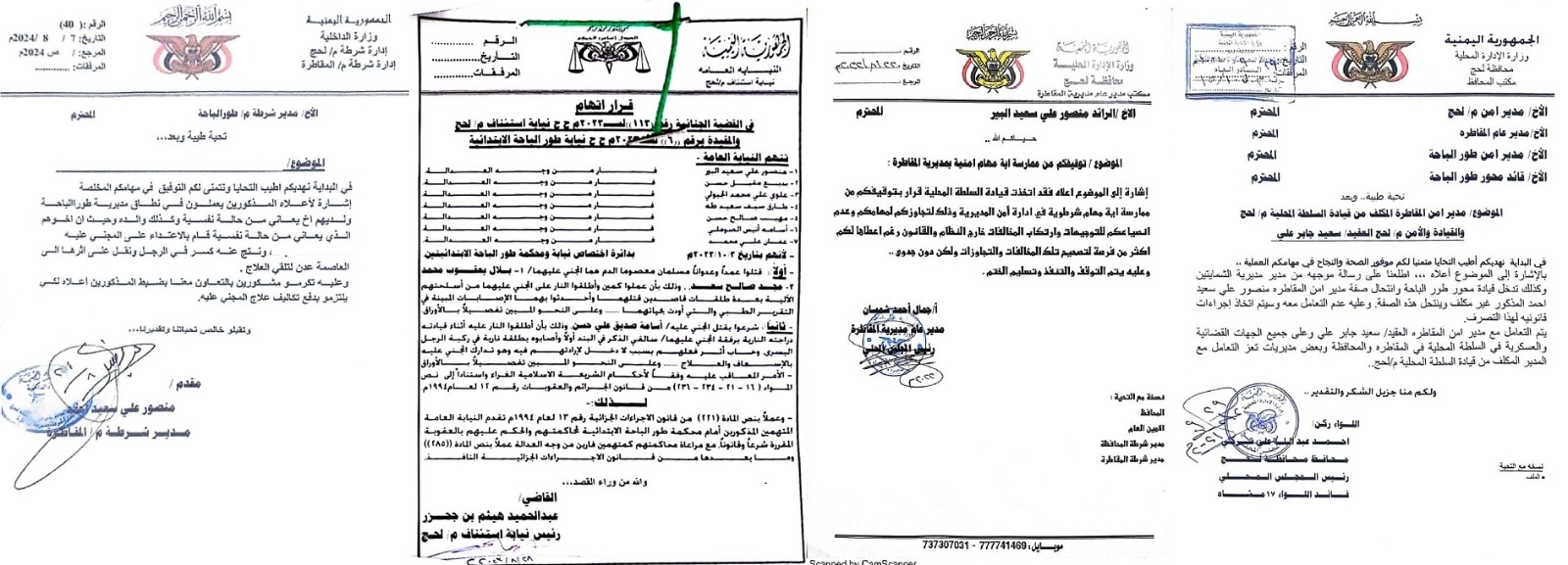 حيث كشفت وثيقة حديثة صادرة الأسبوع الماضي عن استمرار المدعو / منصور علي سعيد البير ، في انتحال صفة مدير أمن مديرية المقاطرة التابعة إدارياً لمحافظة لحج ، رغم التوجيهات الرسمية الصادرة عن المديرية والمحافظة بعدم شرعية ذلك.