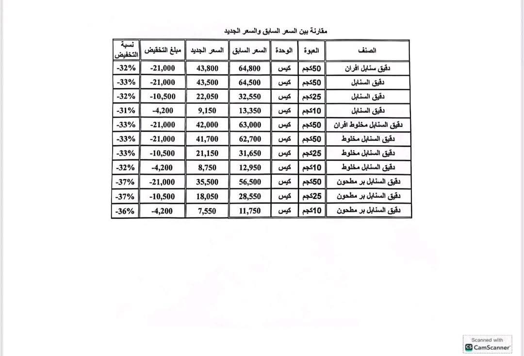 حيث عممت المجموعة اليوم الأربعاء سعراً جديداً لمادة الدقيق 43500 ريال عبوة 50 كجم ، في حين كان سعره السابق قبل هبوط أسعار الصرف قد وصل الى 64 الف ريال.