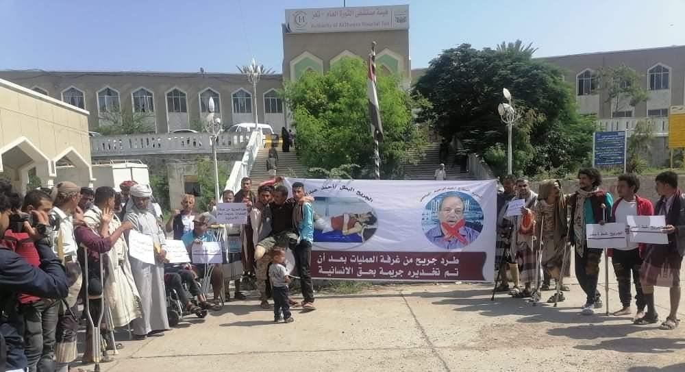 هيئة مستشفى الثورة بتعز تكذب مندوب جرحى الجيش وتوضح حقيقة طرد أحد الجرحى