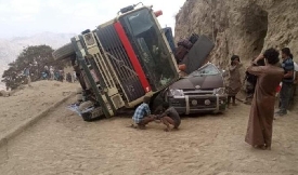 انقلبت اليوم شاحنة محملة بالبضائع على حافلة ممتلئة بالمسافرين، ما أدى إلى سقوط عدد من الضحايا . &nb ...