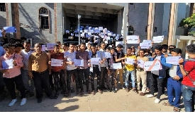 نفذ العشرات من طلاب جامعة تعز وقفة احتجاجية لمطالبة السلطات الأمنية في المدنية سرعة الكشف عن مصير إح ...