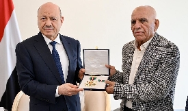 منح رئيس مجلس القيادة الرئاسي، الدكتور رشاد العليمي، اليوم الخميس، وسام الواجب لمدير عام صندوق النظا ...