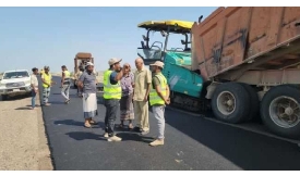 تفقد مدير عام المخا، سلطان عبدالله محمود، اليوم، سير الأعمال الإنشائية في المقطع الأول من مشروع الطر ...