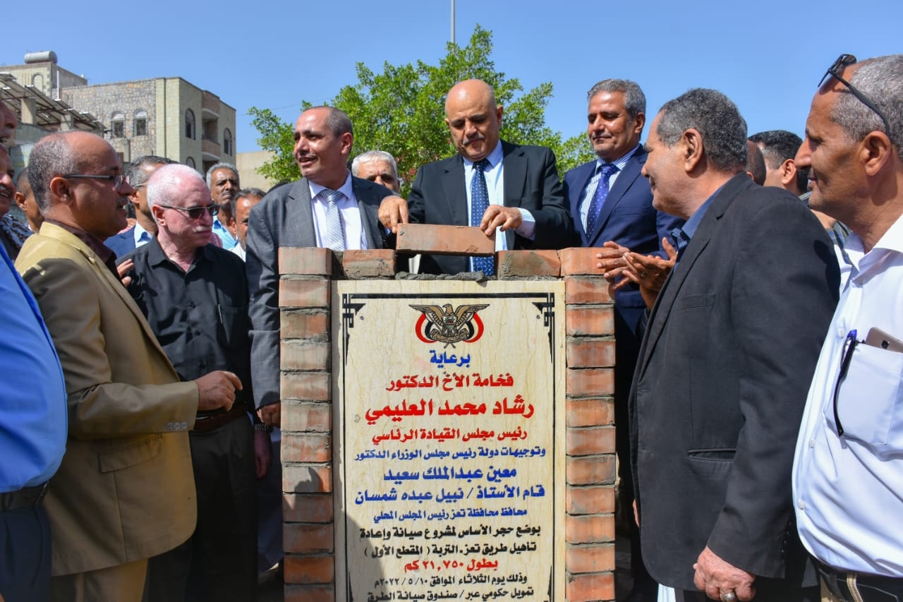 دشن محافظ محافظة تعز نبيل شمسان اليوم الثلاثاء بدء العمل بمشروع صيانة وإعادة تأهيل طريق تعز - التر ...