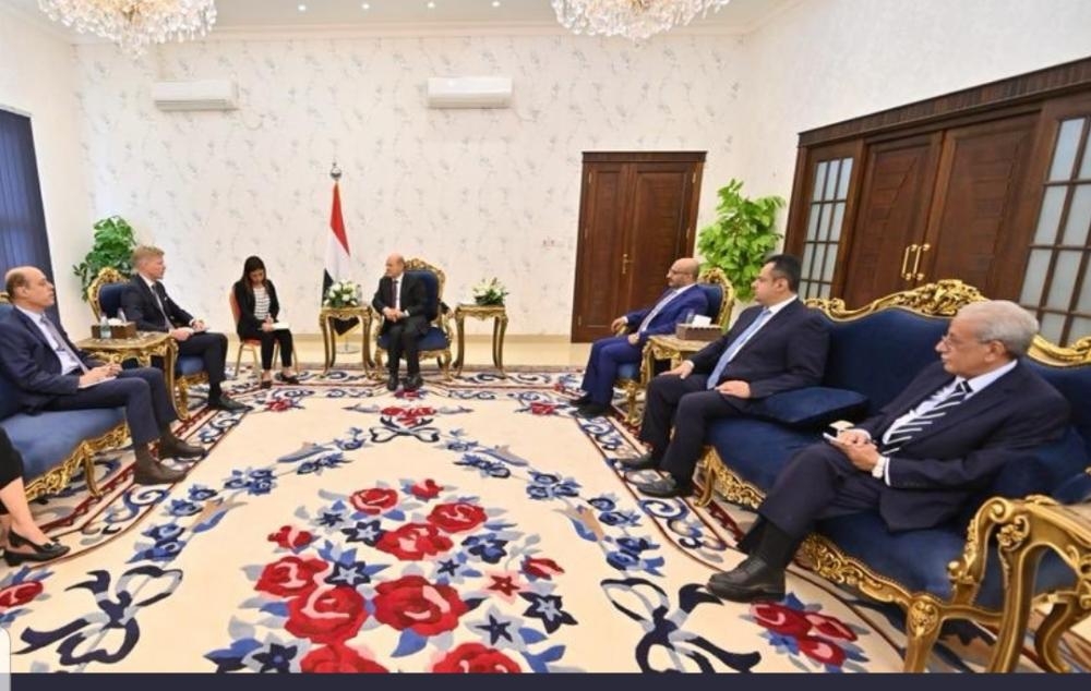 رئيس المجلس الرئاسي في لقائه بالمبعوث الأممي: يجدد دعمه للهدنة ويدعو الطرف الاخر