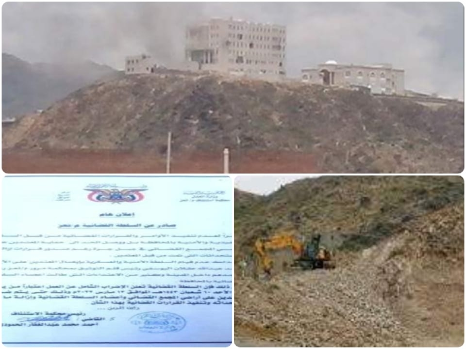 تعز.. السلطة القضائية تعلن الإضراب الشامل بعد الاعتداء على أراضي "المجمع القضائي