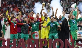 توج المنتخب الجزائري بلقب بطولة كأس العرب، عقب فوزه على نظيره التونسي (2-0)، في المباراة الن ...