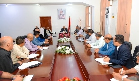 ناقش اجتماع موسع عقد، اليوم، بمحافظة تعز برئاسة محافظ المحافظة، نبيل شمسان، نتائج تقارير المتغ ...