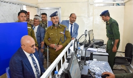 دشن محافظة محافظة تعز نبيل شمسان اليوم مشروع مصلحة الأحوال المدنية لإصدار البطاقة الشخصية بالشريحة ا ...
