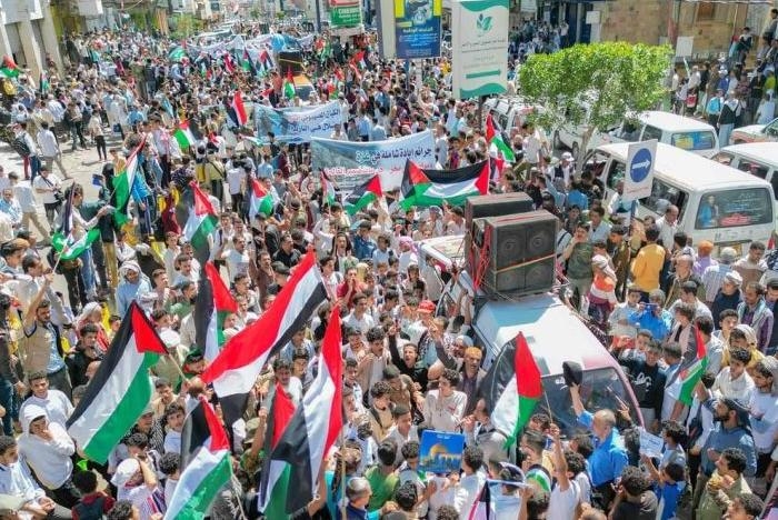 تظاهر الآلاف من أبناء مدينة تعز صباح اليوم الخميس في مظاهرات حاشدة للتنديد بجرائم الاحتلال الإسرائ ...