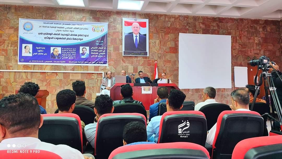 نظم فرع المكتب السياسي للمقاومة الوطنية، في مدينة تعز، اليوم الخميس، ندوة إعلامية تهدف إلى خ ...