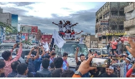 استقبال جماهيري كبير لبعثة فريق طليعة تعز الكروي المتأهل لدوري الممتاز