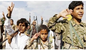 بلكنة مصطنعة، مع اللطم، يأمر معلم حوثي تلاميذه الصغار شمالي اليمن بترديد قصيدة تكرّس الاثني ...
