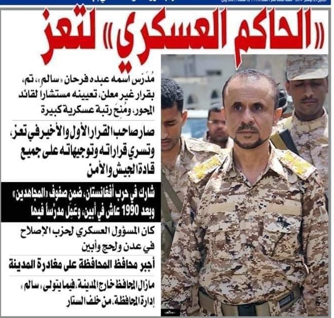 اعترفت الحكومة "الشرعية"، رسمياً، بإعادة تعيين اللواء الركن خالد فاضل قائداً لمحور تعز الع ...