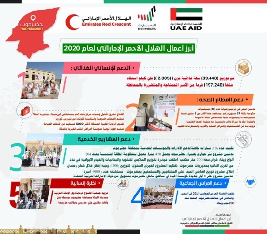 تقرير: أبرز أعمال ومحطات هيئة الهلال الأحمر الإماراتي بحضرموت لعام 2020م