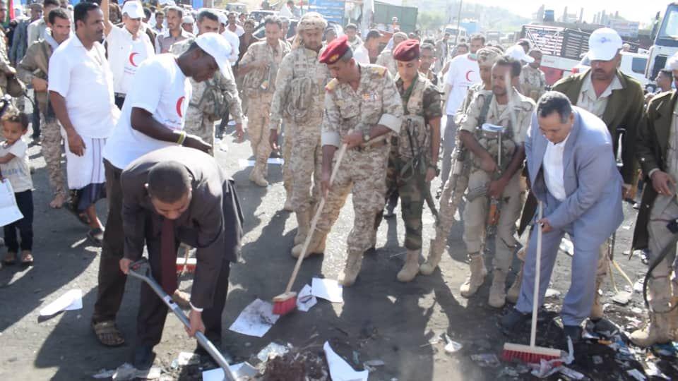 دشن الهلال الأحمر الإماراتي حملة نظافة شاملة وتوعية بمديرية المعافر بمحافظة تعز تحت شعار "حملة ال ...