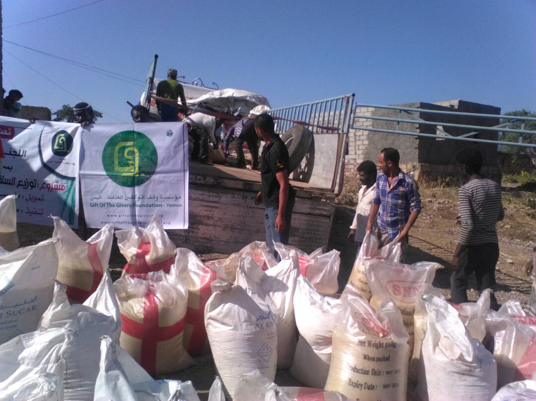 مؤسستا انسام ووقف الواقفين تدشنان توزيع السلة الغذائية في بني شيبه بمحافظة تعز