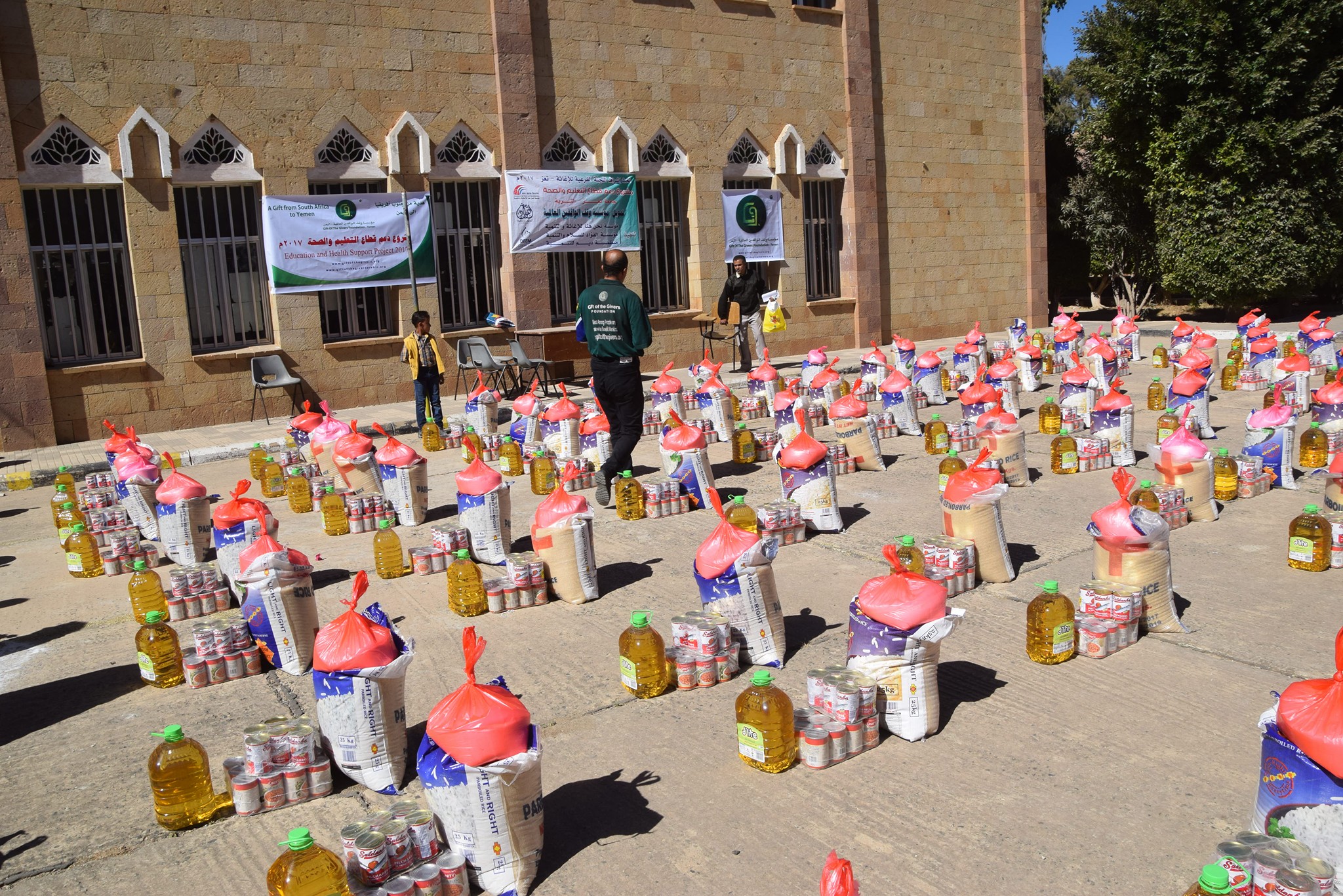 دشنت مؤسسة نحن هنا وشركاؤها اليوم بمحافظة تعز توزيع 873 سلة غذائية لموظفي جامعة تعز ، وذلك في اطار مشروع دعم التعليم والصحة الذي تموله مؤسسة وقف الواقفين العالمية – اليمن .