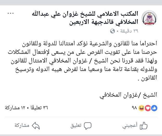 هذا الاعلان لم يصمد دقائق ليتم نسفه بشكل تام ، بإعلان غزوان عبر صفحته على الفيس بوك بانه قام بتسليم نفسه.