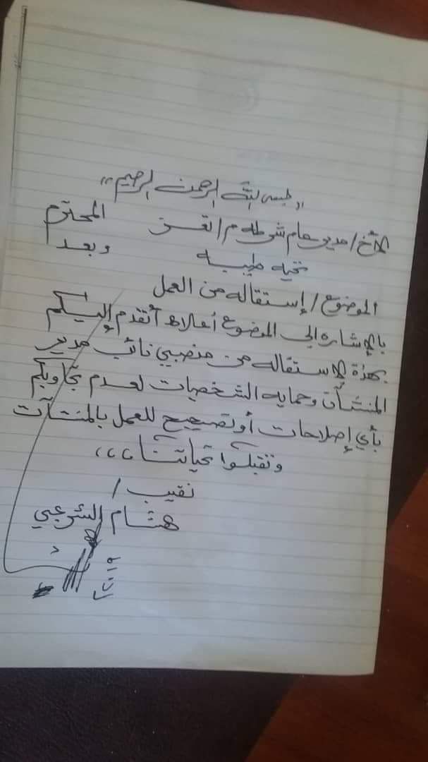 حيث قدم النقيب / هشام الشرعبي استقالته من منصبه كنائب مدير أمن المنشآت وحماية الشخصية الى مدير عام الأمن منصور الأكحلي.