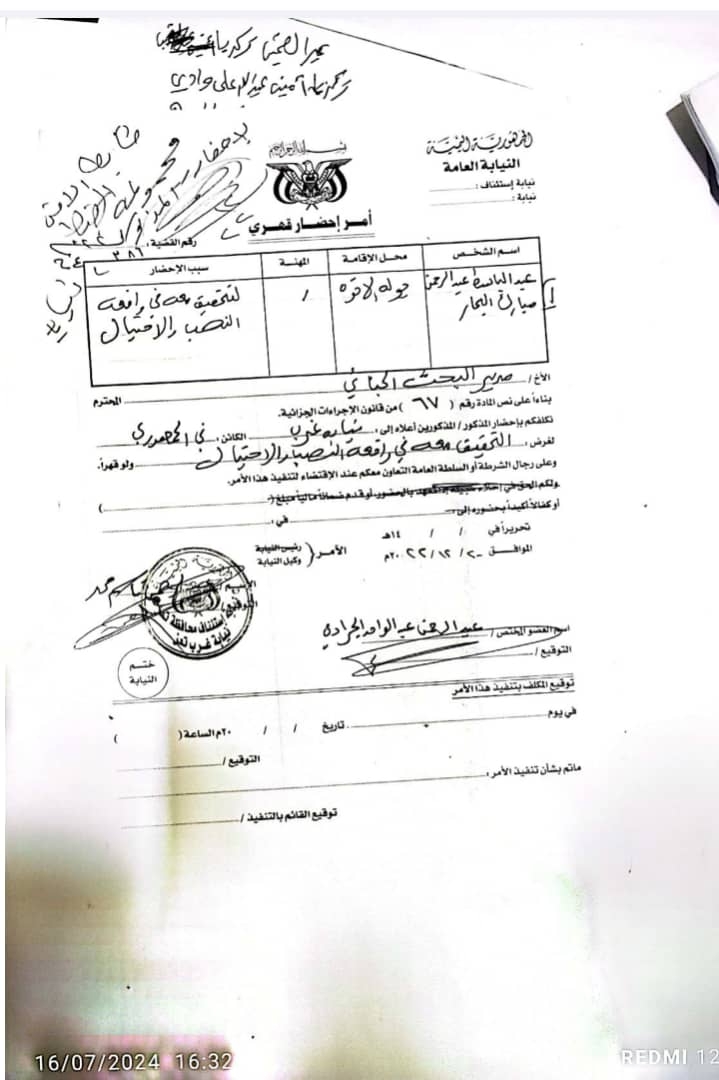 واكد مصدر مقرب من احد الضحايا بأن البحار له سوابق ومطلوب أمنيا من قبل شرطة تعز، منذ سنتين. حيث اصدرت اومر قهرية صادرة من نيابة غزب تعز بتااريخ 20 / ديسمبر. 2022 م في القضية رفم 386:لسنة 2022م