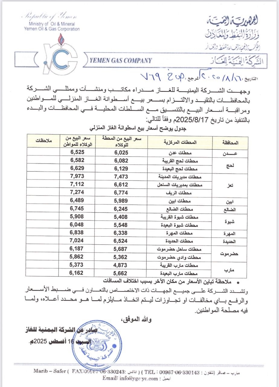 > للمزيد اقرأ : تناقض في بيان شركة الغاز بمأرب يفضح رفضها خفض السعر – وثيقة