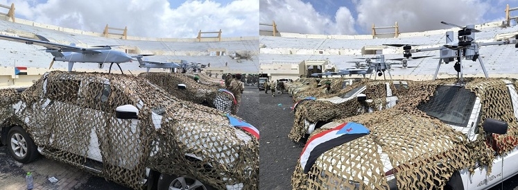 وكان لافتاً في العرض العسكري ، مشاركة آليات تابعة لقوات الدعم والإسناد ، وعلى متنها تم وضع طائرات مسيّرة ، في استعراض هو الأول من نوعه من قبل القوات الجنوبية التابعة للمجلس الانتقالي.