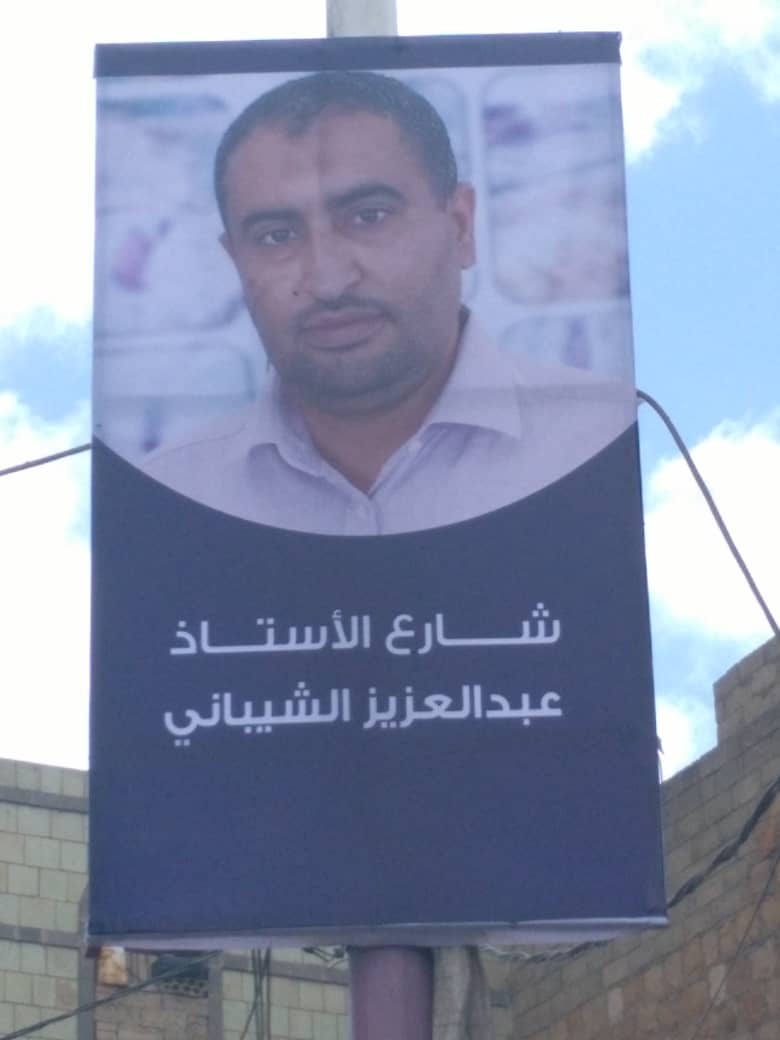 وتداول النشطاء صوراً للوحات علقت على أعمدة الإنارة في شارع بمدينة التربة بالشمايتين، حيث تحمل اللوحات صوراً شخصية حديثة لعبد العزيز الشيباني، وتحتها عبارة "شارع الأستاذ عبد العزيز الشيباني".