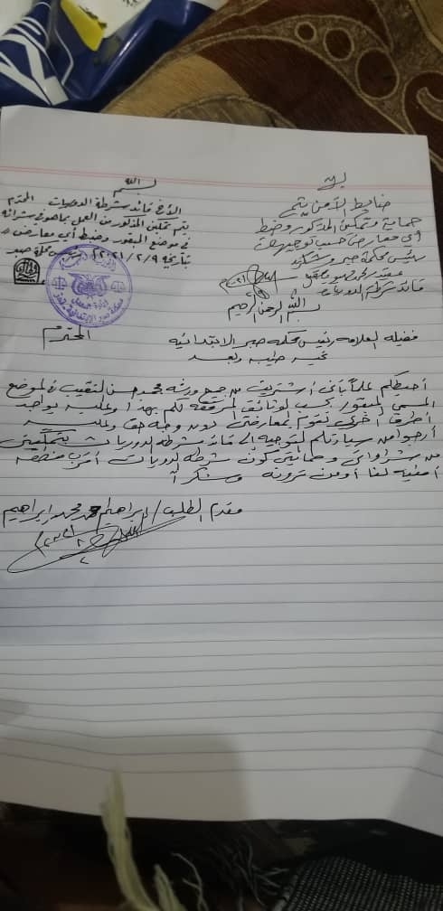 وقالت المصادر بان الشخص الذي قام ببيع الأرض لقائد شرطة النجدة ،قام باستخراج توجيه من قاضي محكمة صبر بتمكينه من الأرض بزعم وجود وثائق لديه تثبت عملية الشراء من ملكها .