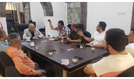 ناقش محافظ محافظة تعز نبيل شمسان، اليوم، مع عددًا من الفنانين والممثلين برئاسة الفنان عامر البوصي، س ...