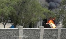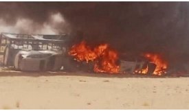 أفاد سكان محليون احتراق قاطرة نقل ثقيل جراء تعرضها لحادث مروري، اليو ...