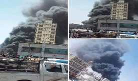 اندلع حريق هائل، اليوم الاثنين، في إحدى مخازن السوق السوداء لبيع المشتقات النفطية بمنطقة الأ ...