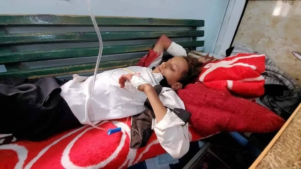 اصابة سبعة أطفال بجروح مختلفة، اليوم الاحد، إثر سقوط قذيفة أطلقتها ميليشيا الحوثي بالقرب م ...