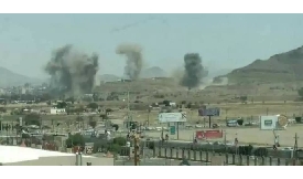 شنت مقاتلات التحالف العربي بقيادة السعودية اليوم الاحد سلسلة غارات جوية على العاصمة صنعاء ال ...