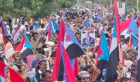 تظاهرة حاشدة للانتقالي في أبين تدعو السعودية للإفراج عن وزير الدفاع السابق الداع