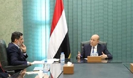 طالب رئيس المجلس الرئاسي رشاد العليمي دول الاتحاد الأوروبي الى ان تحذو حذو أمريكا بتصنيف مليشيات الح ...