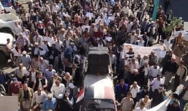 جمال الصامت تظاهر الآلاف من المعلمين وأعضاء هيئة التدريس بجامعة تعز صباح اليوم أمام م ...
