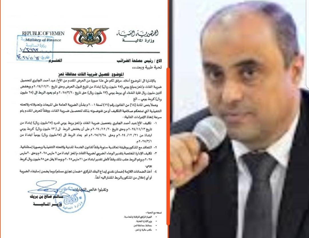 كشفت وثيقة رسمية حصل عليها "الرصيف برس" عن توجيه لوزير المالية سالم بن بريك بالتعاقد مع متحصل لضري ...